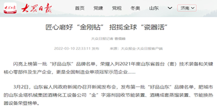 歷經(jīng)多年的拼搏創(chuàng)新,金塔已經(jīng)成為規(guī)模化、成套化、技術(shù)化及節(jié)能化的酒精生產(chǎn)及廢液處理裝備專(zhuān)業(yè)制造商,是《酒精蒸餾塔》 《糠醛水解鍋》《糠醛蒸餾塔》等國(guó)家行業(yè)標(biāo)準(zhǔn)的制定者。以“金”字為商標(biāo)的酒精生產(chǎn)及其節(jié)能環(huán)保設(shè)備是國(guó)內(nèi)客戶(hù)尤其是知名大型酒業(yè)公司信賴(lài)的品牌,與中國(guó)酒業(yè)的龍頭企業(yè) 五糧液集團(tuán)三次合作,深得好評(píng)和信賴(lài),與天冠集團(tuán)、阜豐集團(tuán)、吉良集團(tuán)等大型燃料乙醇巨頭攜手,推動(dòng)了燃料乙醇技術(shù)裝備的進(jìn)步,向國(guó)內(nèi)28個(gè)省市區(qū)近2000家客戶(hù)提供了產(chǎn)品和技術(shù)服務(wù),建立了深厚的合作基礎(chǔ),并出口東南亞、東歐、非洲、南美等多個(gè)國(guó)家。